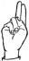 На ћирилици написано ВУКОСЛАВ КОВАЧЕВИЋ састоји се из 17 слова [?]. Исписано ћириличном једноручном азбуком за глувонеме: